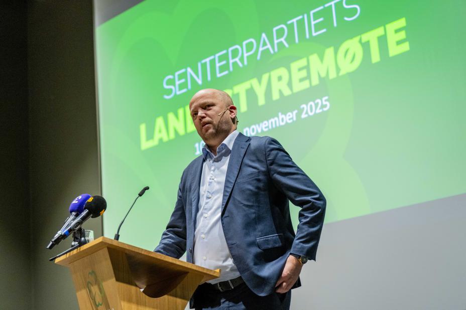 Partileder Trygve Slagsvold Vedum under talen til Senterpartiets landsstyremøte på Gardermoen. Foto: Fredrik Varfjell / NTB