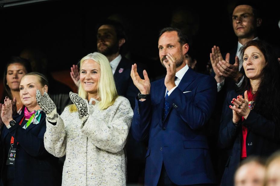 Kronprins Haakon og kronprinsesse Mette-Marit fulgte tidligere i høst Norges 11-1-seier over Moldova. Foto: Cornelius Poppe / NTB
