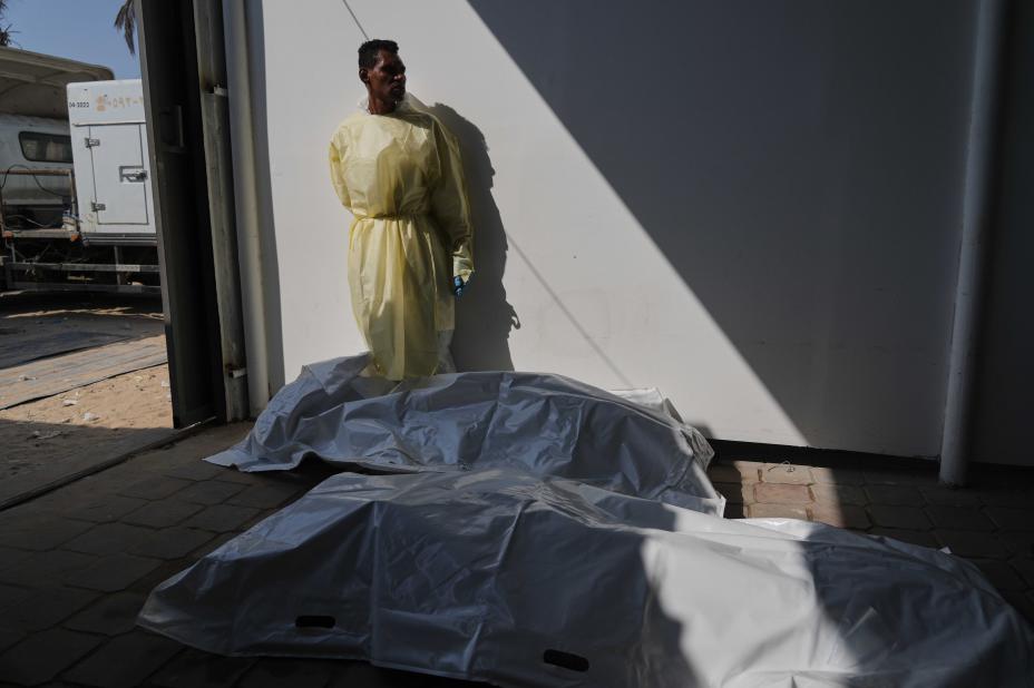 Levninger av uidentifiserte palestinere er utlevert fra Israel i tråd med våpenhvileavtalen. Bildet er tatt ved en tidligere overlevering. Foto: Jehad Alshrafi / AP / NTB