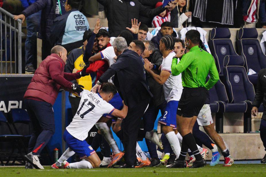 Sport: Opptakten til de elleville scenene var en situasjon der både den amerikanske forsvarsspilleren Alex Freeman og Paraguay-kaptein Diego Gómez forsøkte å plukke opp en ball gikk utover sidelinjen på overtid i annen omgang.