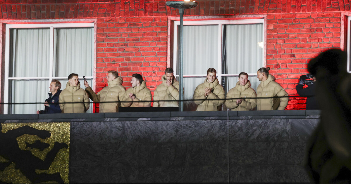 Norges herrelandslaget blir tatt i mot på Rådhuset. Herrelandslaget venter folkefest på Rådhusplassen etter seieren i VM-kvalifiseringskampen i fotball mellom Norge og Italia på San Siro.