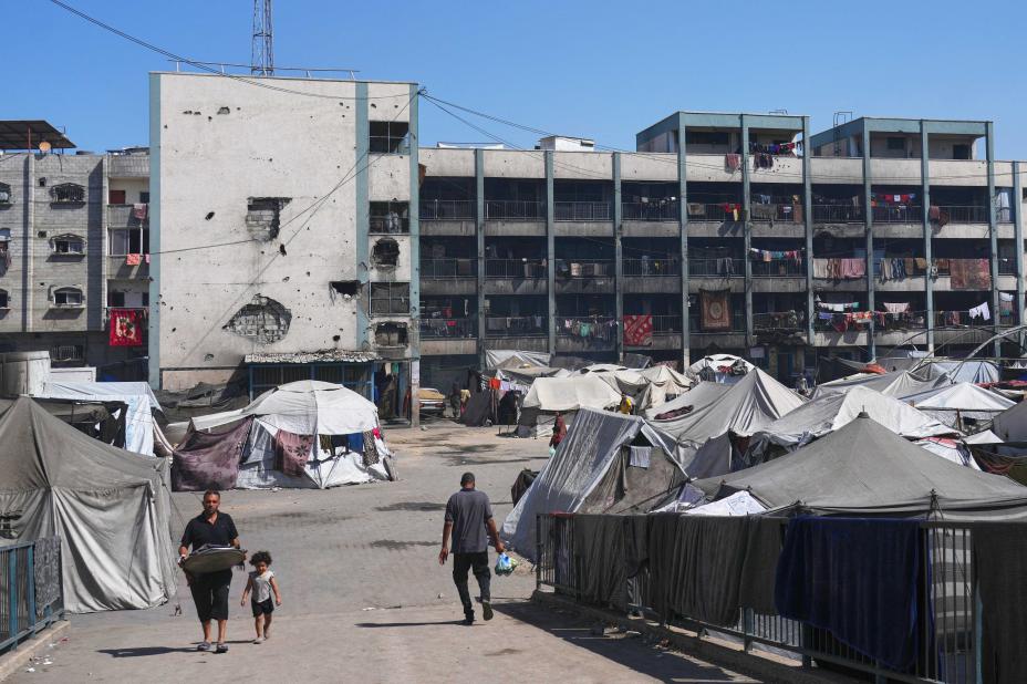 Telt ved en FN-skole i Khan Younis sør i Gaza som brukes som bosted for fordrevne palestinere. Foto: Jehad Alshrafi / AP / NTB