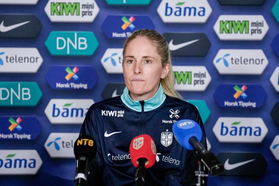 Landslagssjef Gemma Grainger presenterte årets siste tropp. Foto: Heiko Junge / NTB