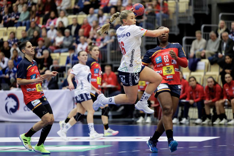 Emilie Hovden herjet med Spania i den første kampen i VM-oppkjøringsturneringen i Sotra Arena. Foto: Paul S. Amundsen / NTB