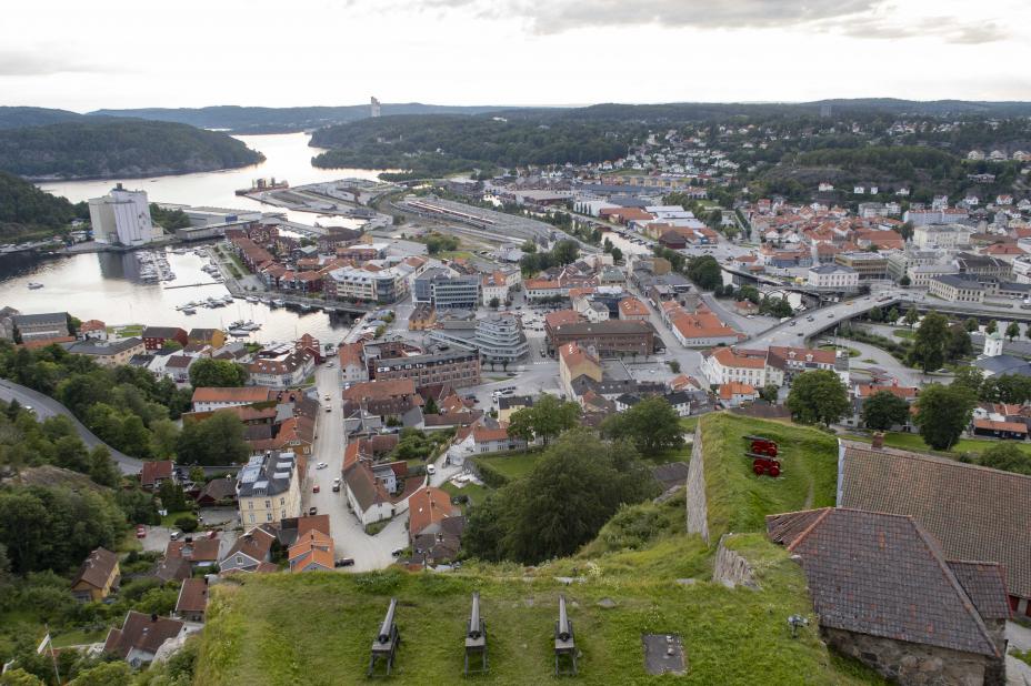 Politiet har ilagt Halden kommune et forelegg på 800.000 kroner for brudd på arbeidsmiljøloven. Avbildet er Fredriksten festning og Halden sentrum. Foto: Paul Kleiven / NTB