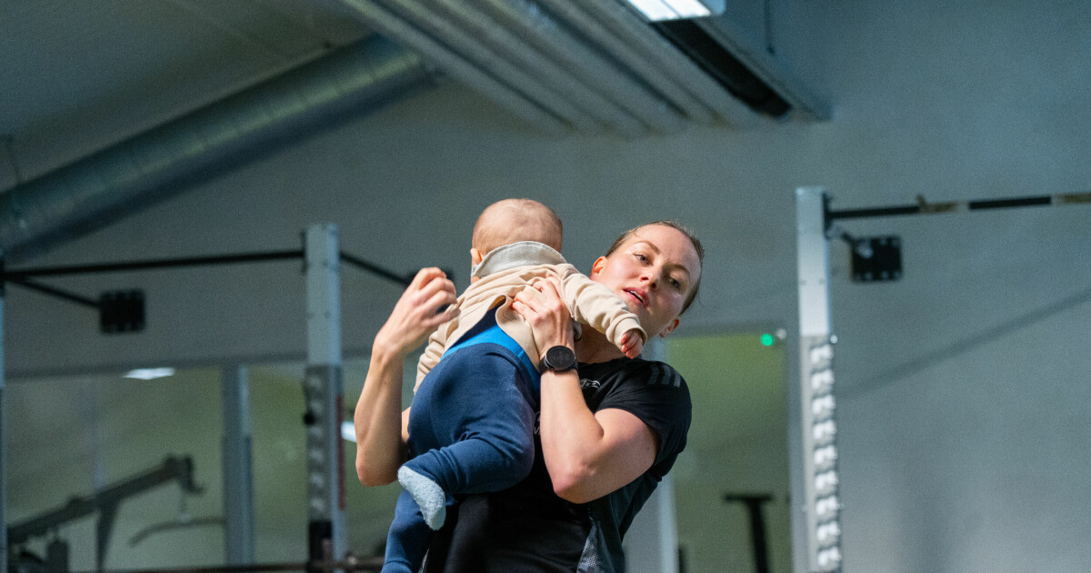 20240811. Trondheim, Norge. Koteng Arena. RBK-spiller Kristine Minde under trening sammen med sønnen Leonardo. Foto: Kristin Grønning / TV 2