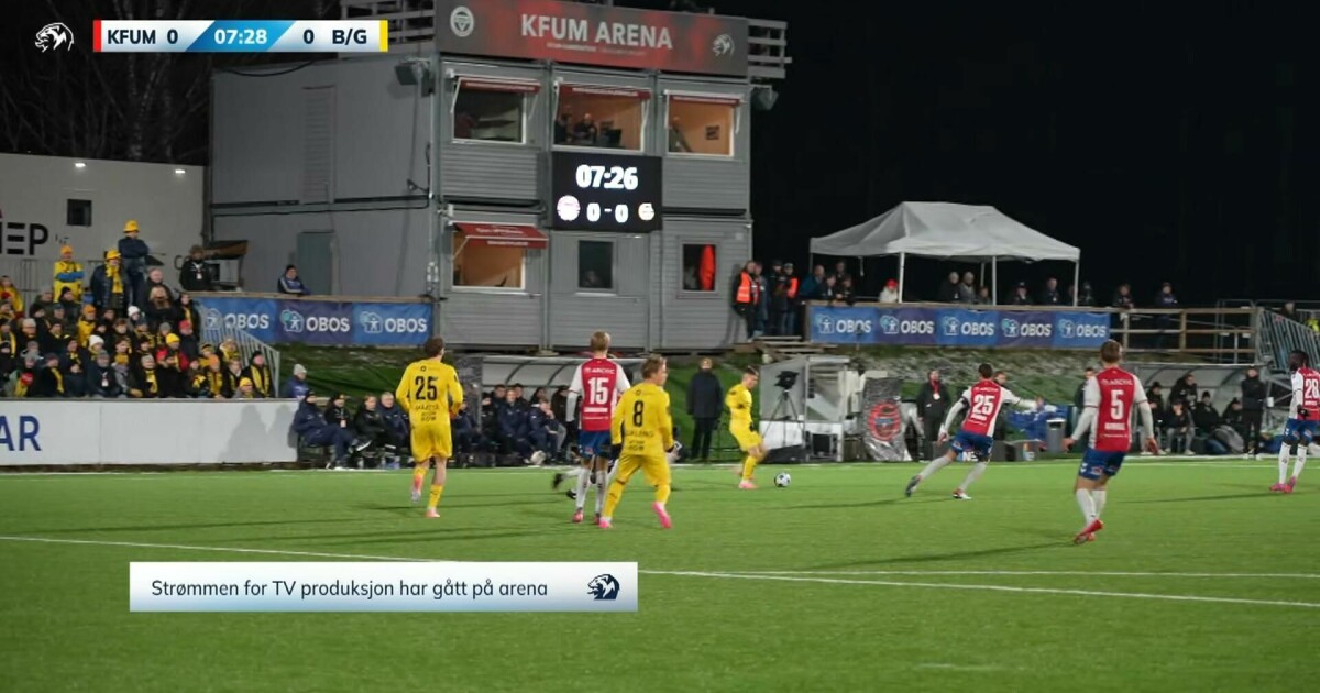 Etter få minutter i skjebnemøtet mellom KFUM Oslo og Bodø/Glimt gikk strømmen for TV-produksjonen på arenaen.
