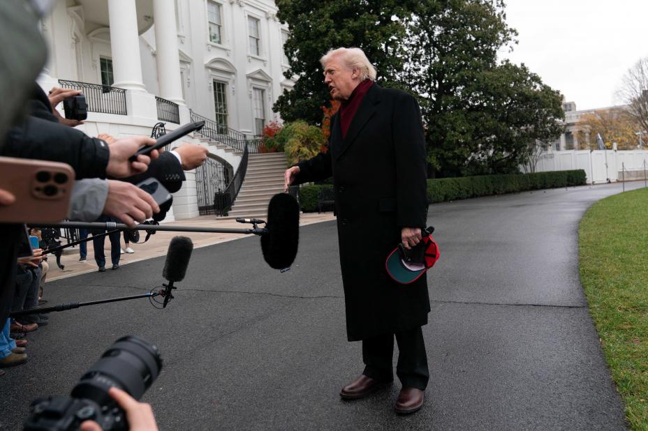 USAs president Donald Trump snakker med pressen lørdag. Foto: Jose Luis Magana / AP / NTB