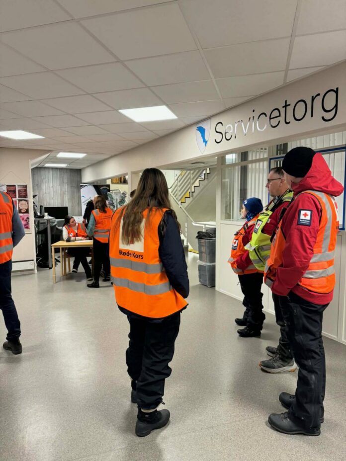 Samleplass for de evakuerte togpassasjerene på Nordlandsbanen ble opprettet på kommunehuset i Trofors. Passasjerene ble evakuert etter at toget fra Steinkjer til Bodø hadde stått stille i flere timer i 14 minus uten strøm etter å ha kjørt på flere rein. Foto: Vefsn Røde Kors Hjelpekorps / Handout / NTB