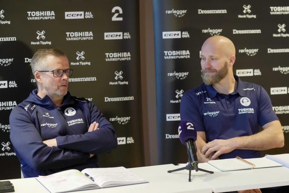 Landslagssjef Sjur Robert Nilsen og sportssjef Patrick Thoresen under et pressetreff mandag.