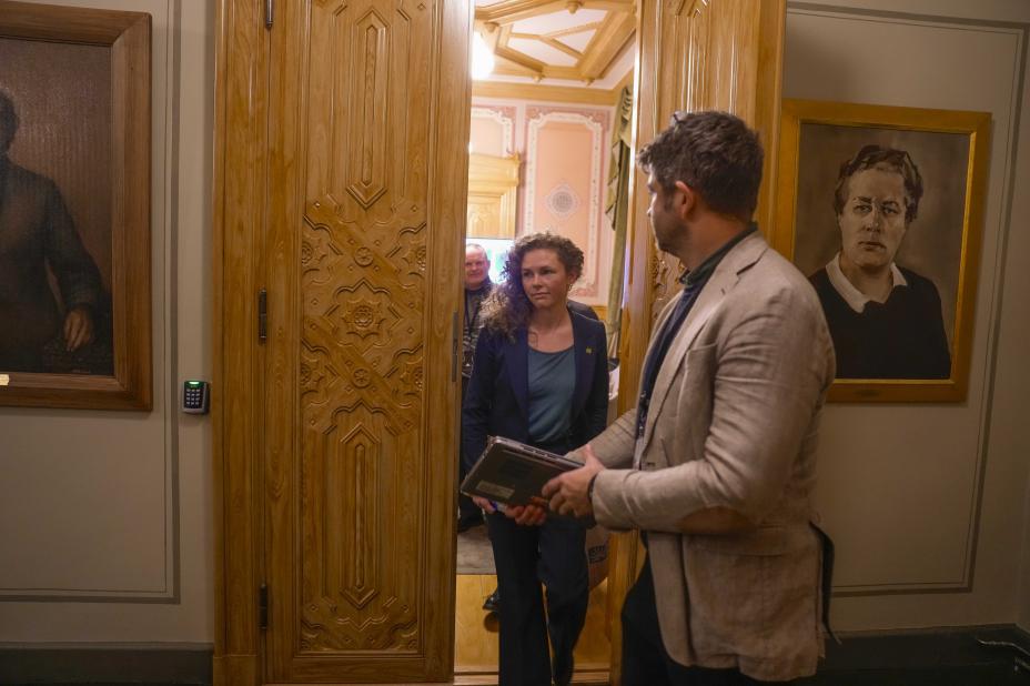 MDG nestleder Ingrid Liland etter møte. MDG kalte inn sentralstyret til krisemøte om budsjettforhandlingene på Stortinget ved vandrehallen