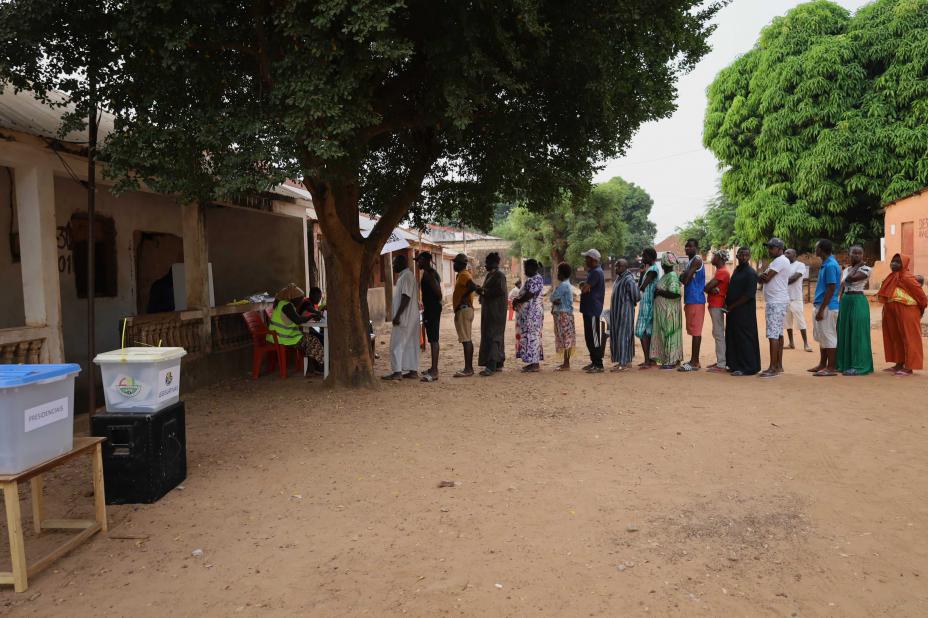 På søndag sto folk i Guinea-Bissau i kø for å levere stemmen sin i presidentvalget. I dag kunngjorde militærledelsen i landet at de har kuppet makten. Foto: Darcicio Barbosa / AP / NTB
