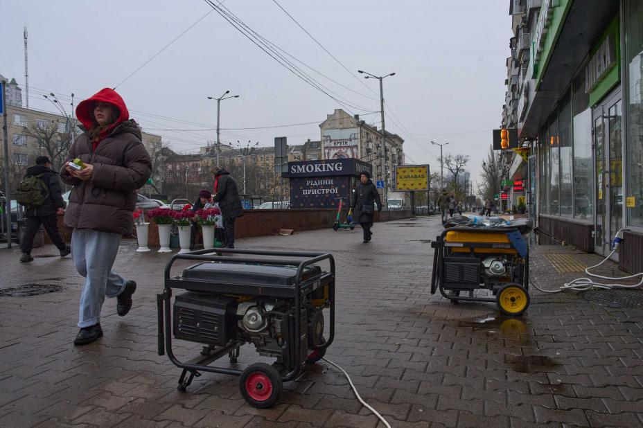 Aggregater er blitt et vanlig syn i Kyiv etter at Russland har gått til systematiske angrep på Ukrainas energiforsyning. Foto: AP / NTB
