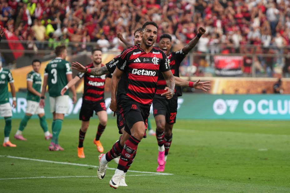 Danilo jubler etter å ha scoret Flamengos vinnermål i Copa Libertadores-finalen mot Palmeiras. Foto: Guadalupe Pardo, AP / NTB