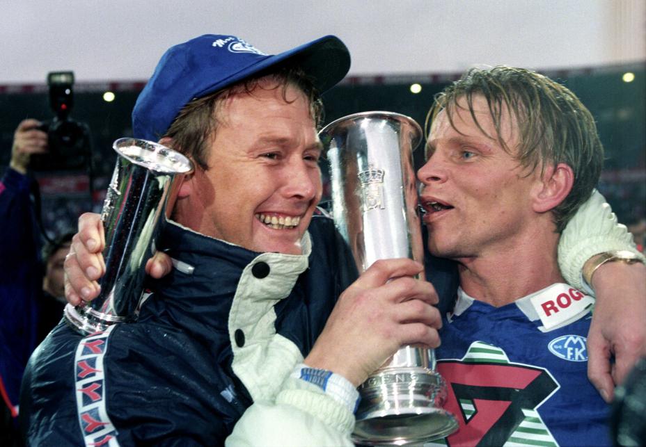 Åge Hareide (t.v.) fra da han ledet Molde til cuptriumf i 1994. Foto: Terje Bendiksby / NTB