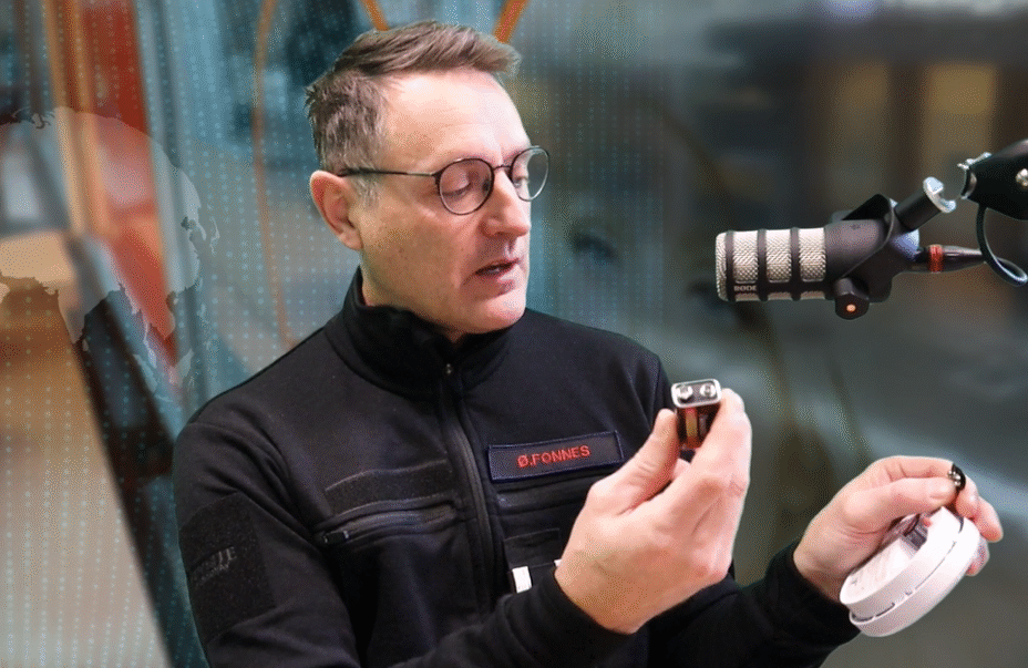 Fornes minner om at 1. desember er røykvarslerens bursdag, og at nytt batteri er den beste gaven du kan gi. Han demonstrerte hvordan batteriet byttes, og understreket at varsleren må testes med en tydelig, høy lyd for å være sikker på at den fungerer som den skal. Minimum én røykvarsler i hver etasje er lovkravet, men brannvesenet anbefaler flere – gjerne seriekoblet, slik at alle varsler samtidig ved brann.