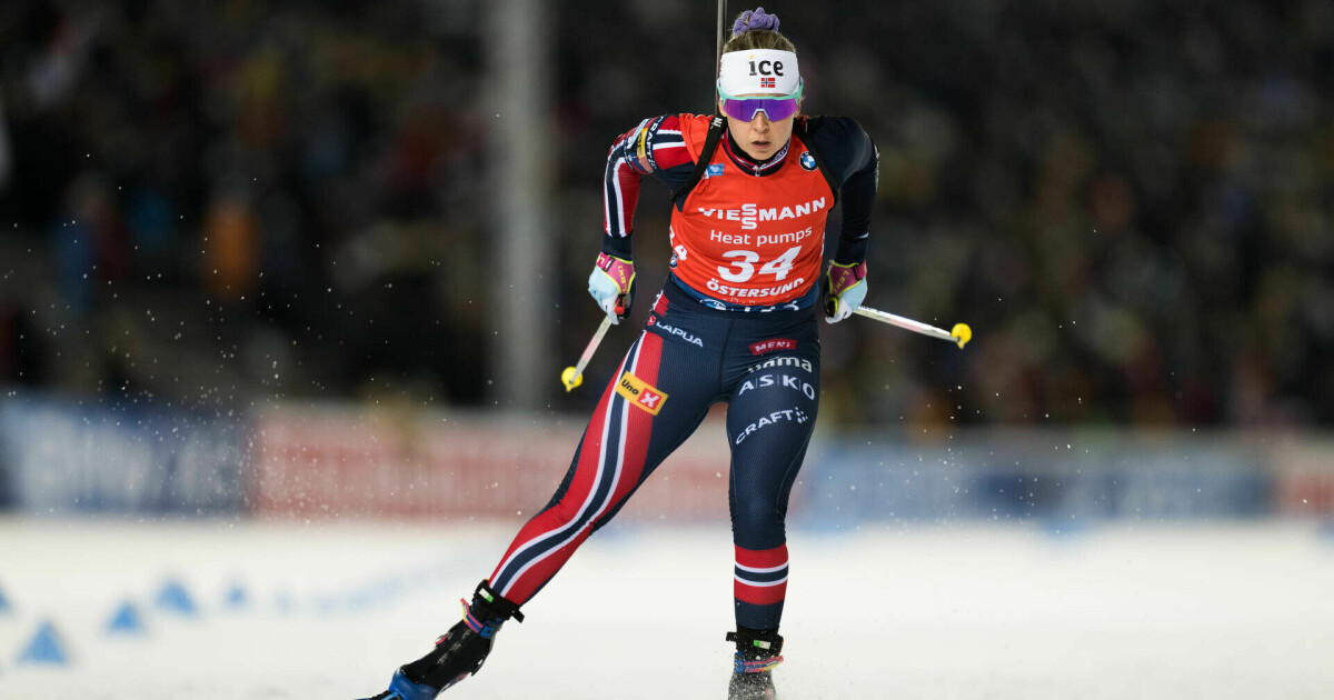 For Ingrid Landmark Tandrevold ble det en tøff aften. 29-åringen gikk fort i sporet, men det ble to bom på liggende skyting og tre bom på stående skyting. Dermed ligger hun på en foreløpig 66. plass.