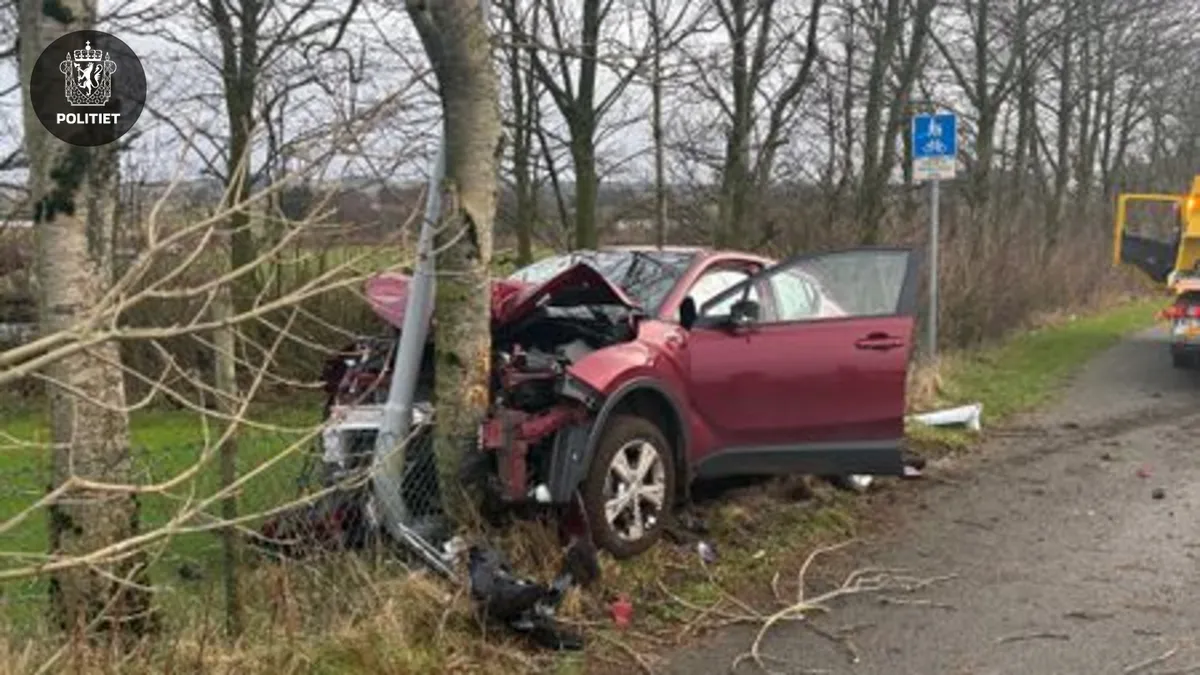 Politiet fikk melding klokken 1430 om en bil som hadde kjørt inn i et tre. Politiet og helse har vært på stedet. Politiet har foretatt undersøkelser og tatt beslag i førerkortet til en mann i 30 årene. Han er tatt med ambulansen og kjørt til legevakt for sjekk.