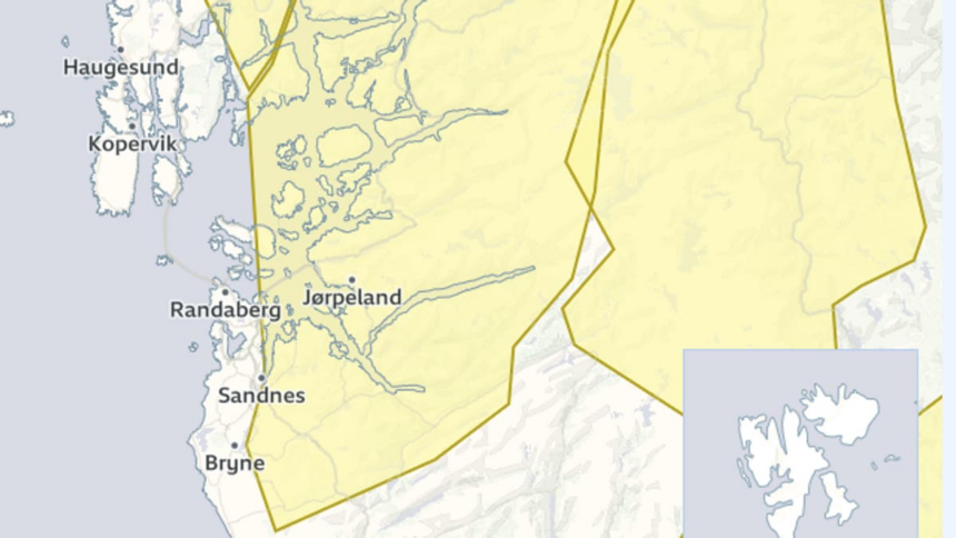 Lokalt Gult farevarsel for deler av Rogaland Sist Oppdatert: 11. januar 2026 13:10 NRK dele dele Del denne artikkelen Facebook Twitter Epost Kopier lenke Print Forrige Det var Cato Strøm som døde på Tjensvoll i Stavanger 1. nyttårsdag – NRK Rogaland – Lokale nyheter, TV og radio Neste North Tandem oppga slakteri ute av drift på helsesertifikater – NRK Vestland
