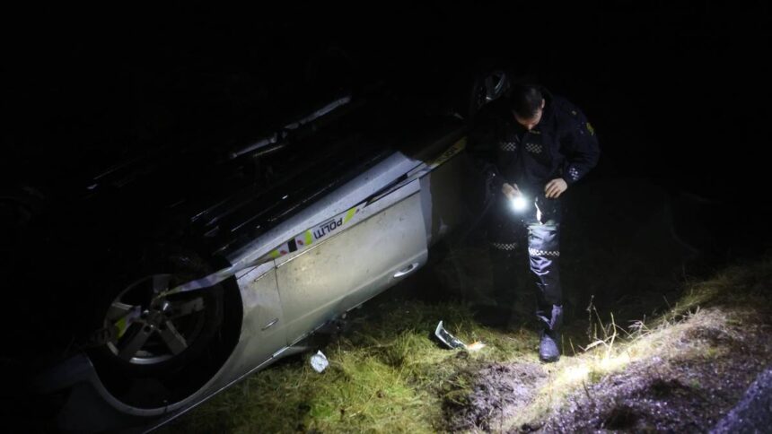 På Karmøy måtte nødetatene onsdag kveld rykke ut til en utforkjøring i Austre Karmøyveg (bildet). Ingen ble skadet, men det er glatt på veien.