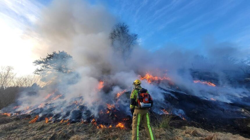 Mannskap fra to brannstasjoner og et skogbrannhelikopter ble tidligere i februar kalt ut for å hindre videre spredning mot skog og bebyggelse.