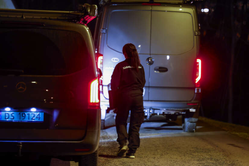 Kriminalteknikere er på stedet og har startet sitt arbeid.