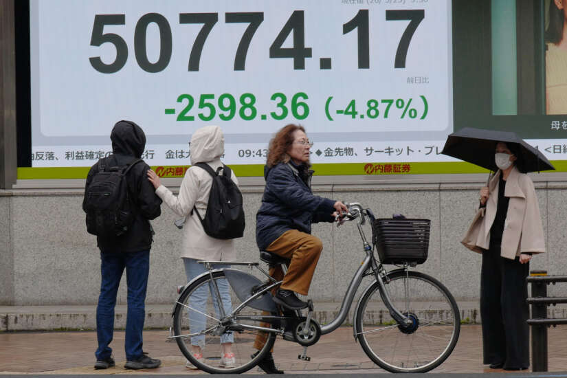 USAs: Nikkei-indeksen i Tokyo falt med 3,5 prosent etter stengetid mandag, mens den bredere Topix-indeksen endte ned 3,4 prosent.