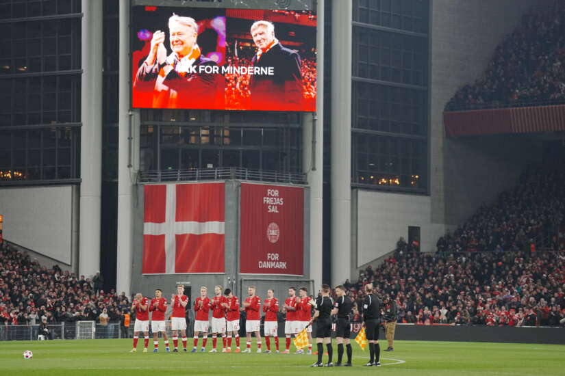 På storskjermen før kampstart ble både Hareide og en annen tidligere dansk landslagssjef, Sepp Piontek, hedret med applaus både fra spillere og tilskuere.