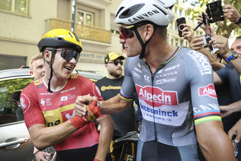 Sport: Visma-rytter Hagenes var sammen med Jonas Abrahamsen og to andre ryttere bare noen hundre meter bak Van der Poel på tampen, men da de begynte å se på hverandre, fikk nederlenderen luken han trengte for å ta sin tredje strake seier i rittet.