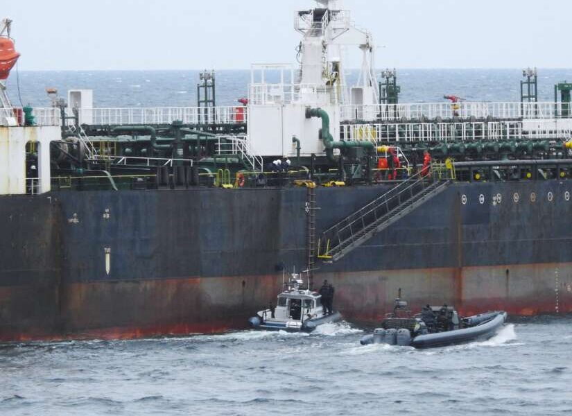 Det er trolig første gang et utslipp kan spores til et sanksjonert skip, ifølge kystvakten.