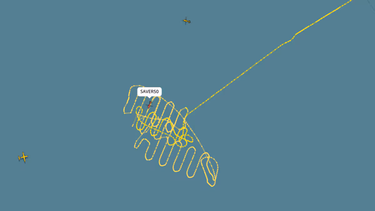Klokken 16.50 var et redningshelikopter av typen SAR Queen framme på stedet og startet søk. Data fra Flightradar viser at helikopteret rykket ut fra Sola.