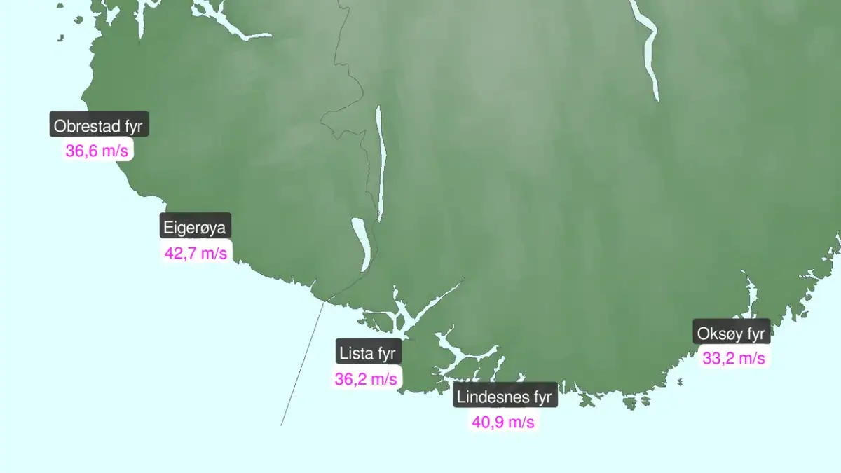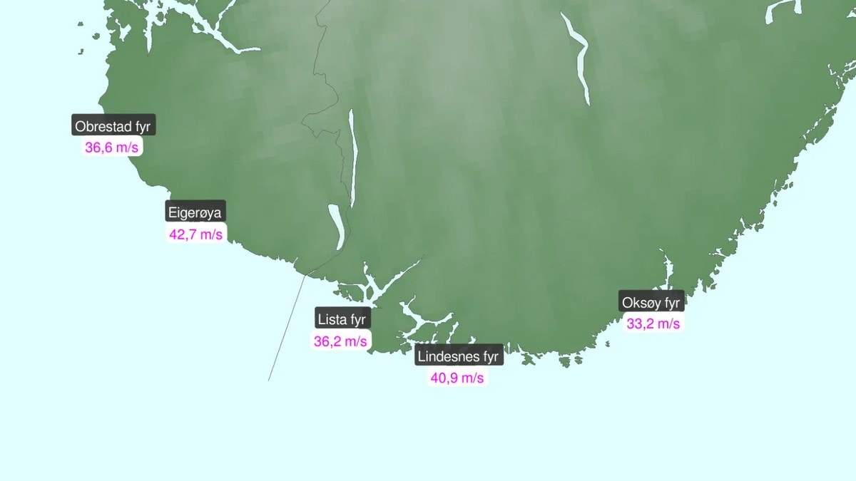 Områdene som har meldt flest skader er strekningen Stavanger–Lindesnes.