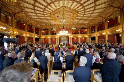 Bildet er fra sist gang stortinget samlet seg for første gang etter…