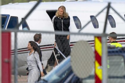 Erling Braut Haaland ankommer Oslo lufthavn Gardermoen i privatfly fra Manchester med…