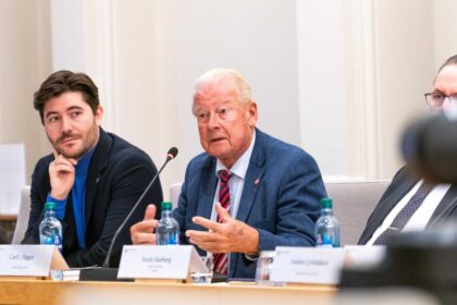 Grunde Almeland (V), her sammen med Carl Ivar Hagen (Frp) i Kontroll-…