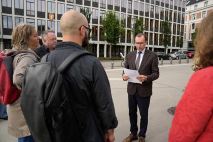 Norske journalister overleverer et brev til utenriksminister Espen Barth Eide (Ap) der…