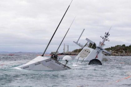 Bilde er av KNM Helge Ingstad som i 2018 kolliderte med et…