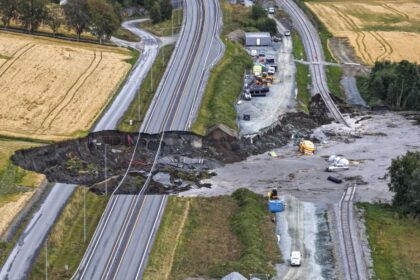 Mann tatt av et stort ras i Levanger – E6 blir stengt i flere dager