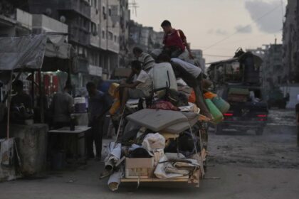 Fordrevne palestinere på flukt fra Gaza by der Israel nå har innledet…