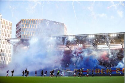 Bluss og fyrverkeri under eliteseriekampen i fotball mellom Vålerenga og Sarpsborg 08…