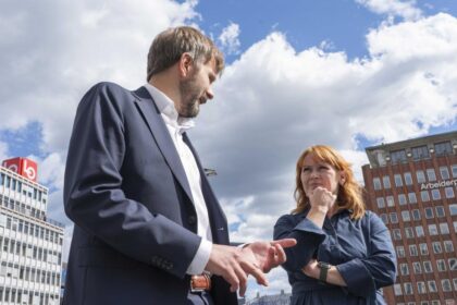 Helse- og omsorgsminister Jan Christian Vestre (Ap) og LO-leder Kine Asper Vistnes…