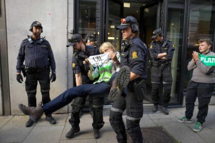 Politiet fjernet aktivister fra Extinction Rebellion som aksjonerte inne og utenfor DNBs…
