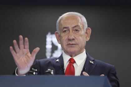 Israels statsminister Benjamin Netanyahu under en pressekonferanse i statsministerens kontor i Jerusalem,…