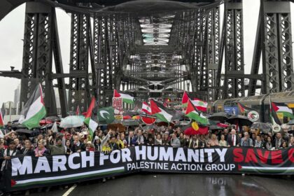 Titusener fyller Sydney Harbour Bridge i demonstrasjon for Palestina