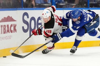 Emil Lilleberg (til høyre) i duell med på Ondrej Palat fra New…