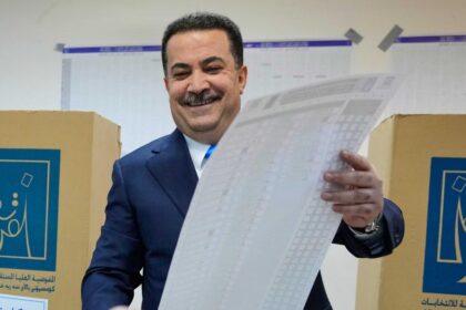 Iraks statsminister Mohammad Shia al-Sudani på valgdagen. Foto: Hadi Mizban / AP…