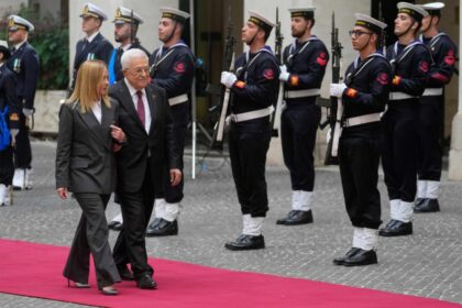 Palestinas president Mahmoud Abbas sammen med Italias statsminister Giorgia Meloni i Roma…