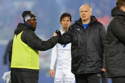 Strømsgodsets trener Dag-Eilev Fagermo etter at nedrykket var klart. Foto: Svein Ove…