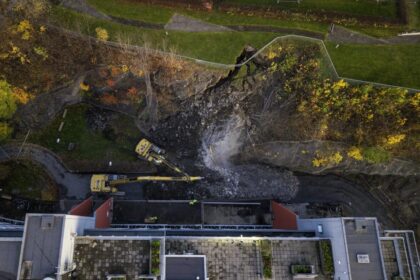 Anleggsmaskiner i gang med arbeidet etter raset ved Carl Berner mellom Sukkertoppen…