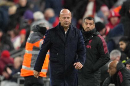 Liverpool-manager Arne Slot sliter tungt om dagen. Foto: Jon Super / AP…